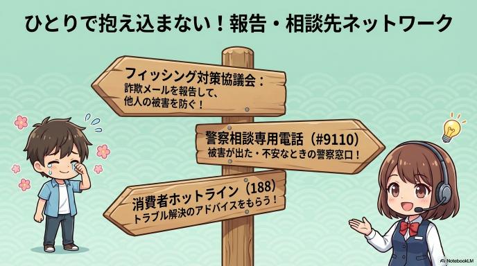報告・相談先:フィッシング対策協議会/警察相談/188
