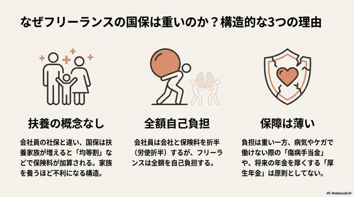 この章では、フリーランス・個人事業主が加入する国民健康保険(国保)の負担がなぜ重くなりやすいのかを、