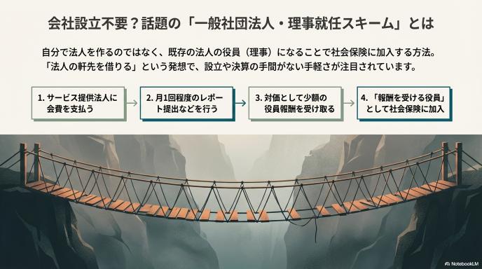 会社を作らずに社保に入る?流行する「一般社団法人・理事就任スキーム」の正体