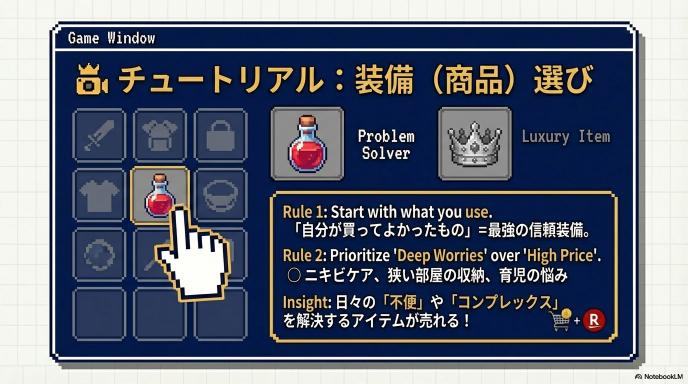 「1個売れたら1万円儲かる!」という高単価な商品ばかり狙うのは初心者にはキツいです。それよりも、「ニキビを隠したい」「部屋を広く見せたい」といった、人の「深い悩み」を解決できる商品を選ぶほうが、結果的にたくさん売れて稼ぎやすくなります。