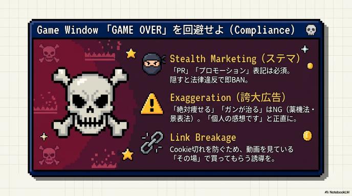 「ステマ(ステルスマーケティング)」は法律で禁止されています。アフィリエイト(広告収入)でお金を稼ぐ目的で商品を紹介する場合は、必ず視聴者にそれが分かるように明記しなければなりません。