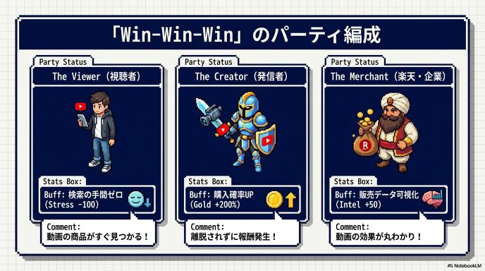 日本中で使われている「楽天ポイントが貯まる・使える」という巨大な楽天のシステムと、誰もが毎日見る「YouTube」の組み合わせは最強です。視聴者からすれば「いつも使ってる楽天アカウントで、しかもポイントが付くならこのまま買っちゃおう」と、お買い物のハードルが極限まで下がります。これは発信者にとって、めちゃくちゃモノが売りやすい環境になるということです。