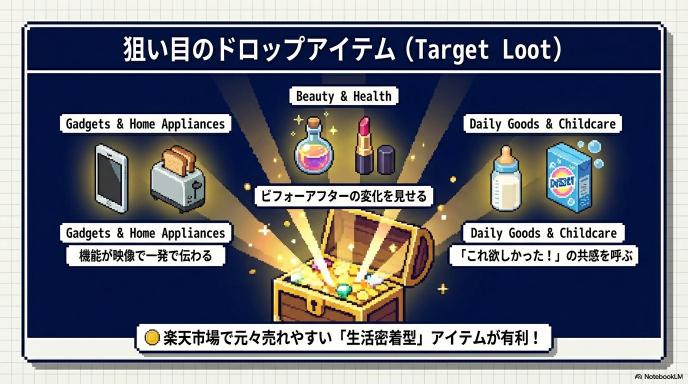 これらのジャンルは楽天市場でも元々よく売れる人気カテゴリなので、初心者でも非常に狙い目です。